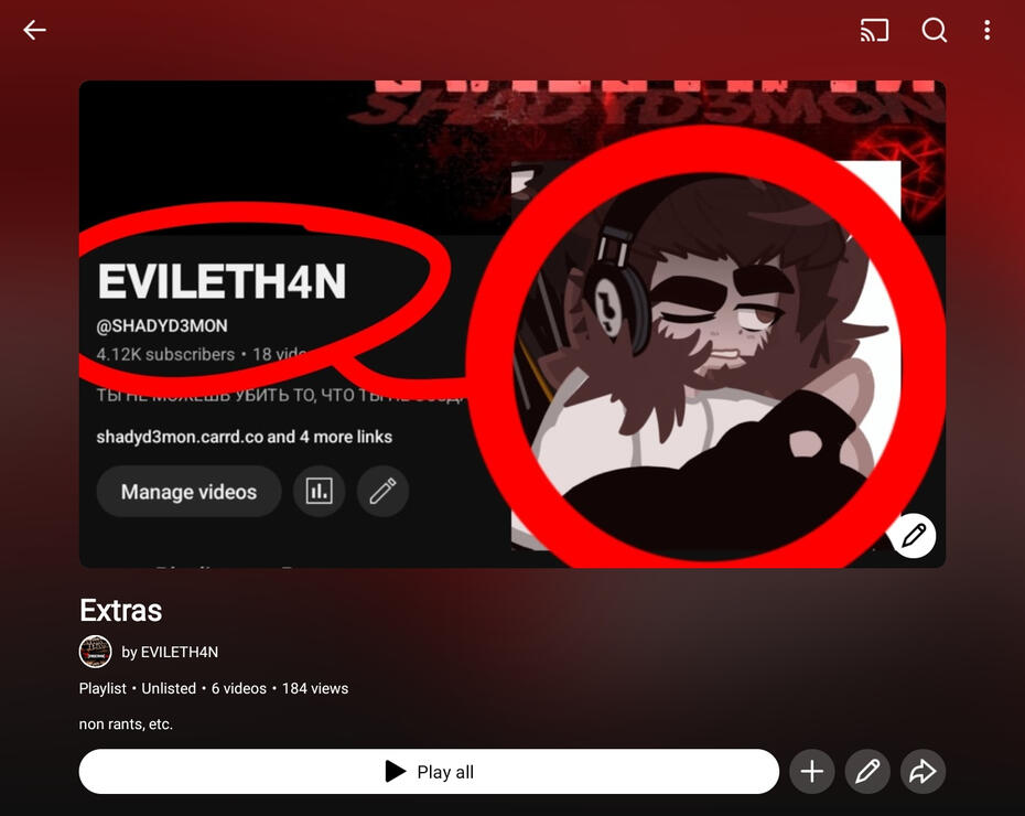 DC username is shadyd3mon. You can also check out my personal gram for more stuff outside the usuals. You can also find me on the GachaTubers Wiki and the SHADYD3MON Wiki.My most active platform is Instagram, which is the best way to contact me, and my primary platform is YouTube (I'm a YouTuber what do you expect). Fun fact, my oldest account is Spotify, made about 2019.PLEASE DO NOT @ ME IN ANYTHING THAT ISN'T RELAVENT TO ME LOLIf you see an account going by my name while not being linked here, or acting hostile, it likely isn't me. I do my best to maintain respect behind the scenes despite how I pretend to be in public. Contact me if you think I'm being impersonated, I've had lots of issues with that.
